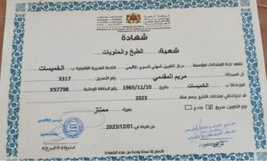 حصلت مريم المقدمي على شهادة من مركز التكوين المهني النسوي الإقليمي التابع للمديرية الإقليمية بالخميسات على شهادة الطبخ و الحلويات، بعدما تمكنت من إجتياز الاختبار امتحان التخرج لسنة 2023، و تعتبر مريم المقدمي من ضمن الفاعلات الجمعويات بإقليم الخميسات، و هي الشخصية التي تحب دائما الاشتغال في صمت بعيدا عن الأضواء الكاشفة..