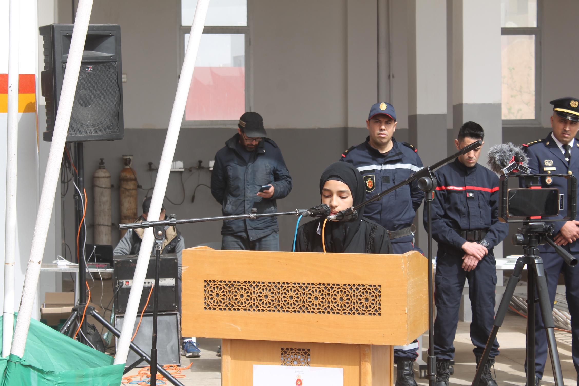 ثم وقف الجميع احتراما و إجلالا للنشيد الوطني الخالد، وقفة زادها بهاء الترديد الجماعي الذي قامت بها مجموعة من تلميذات و تلاميذ المؤسسة الخصوصية نور الهدى بالخميسات، الذين حضروا للاستفادة من هذه الأيام المفتوحة المتميزة..لتقدم بعد ذلك عناصر الوقاية المدنية عروضا متميزة في الإنقاذ و الإسعاف و التدخلات لإنقاذ أرواح المواطنين..