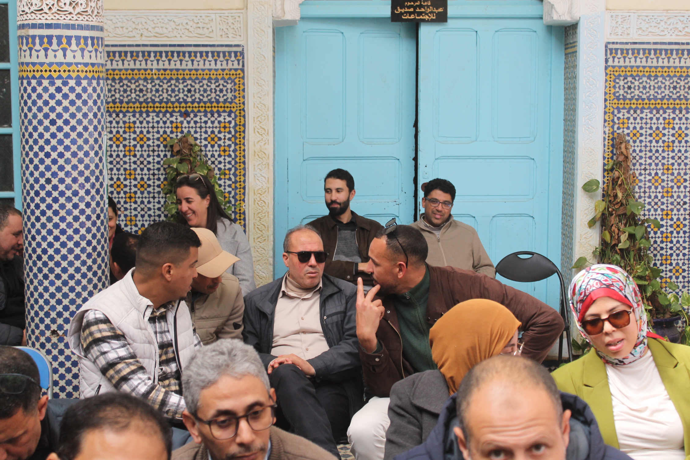 نظمت الجامعة الحرة للتعليم – النقابة الوطنية لمسيري المصالح المادية و المالية جهة الرباط سلا القنيطرة المنضوية تحت لواء الاتحاد العام للشغالين بالمغرب لقاء تواصليا و تنظيميا برئاسة الكاتب العام للجامعة الحرة للتعليم يوسف علاكوش يومه الخميس 12 مارس 2026 ابتداء من الساعة الواحدة زوالا بالمقر المركزي مارسا الرباط.. حضره عدد مهم من مسيري المصالح المدية و المالية و مفتشي الاقتصاد و أعضاء المكتب الوطني لمسيري المصالح المادية و المالية و أعضاء المكتب الجهوي لنقابة المفتشين و هم جليل بنسلام المكلف بالتنسيق الجهوي و عبد السلام أزنادي و سناء شكشوكي و المسيرة النشيطة قدسية سلطاني، و الكاتب الإقليمي بسلا لحسن الصنهاجي، و حسناء عاصم الكاتبة الإقليمي بالصخيرات اتمارة، و حسن مقران بالخميسات، يتقدمهم بوبكر الرفالية مفتش الاقتصاد بصفته الكاتب الجهوي لنقابة المفتشين..