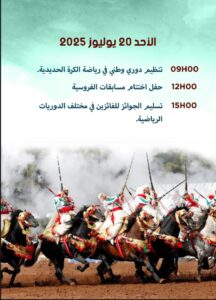 كما سيتضمن البرنامج عروضًا في فن الفروسية التقليدية “التبوريدة”، إلى جانب ندوات فكرية حول قضايا الجهوية و التنمية السياحية، و مسابقات رياضية متنوعة.