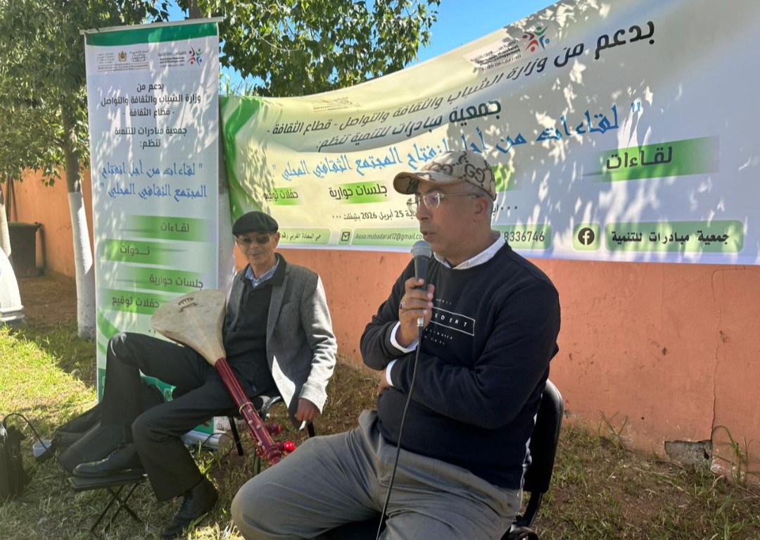 في إطار تنفيذ مشروع “لقاءات من أجل انفتاح المجتمع الثقافي”، وفي إطار اتفاقية شراكة مع وزارة الشباب والثقافة والتواصل – قطاع الثقافة، نظمت جمعية ثقافية لقاء منفتحا يوم الأربعاء 15 أبريل 2026 بفضاء الذاكرة التاريخية للمقاومة والتحرير بمدينة تيفلت، حول موضوع “لقاء منفتح على شاعر وفنان أمازيغي”، وذلك في أجواء ثقافية وتفاعلية مميزة.