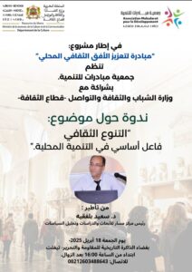 وفي تصريح إعلامي، أوضح الأستاذ مراد اليوسفي، رئيس جمعية مبادرات للتنمية، أن هذه الندوة تأتي كجزء من رؤية أشمل تهدف إلى جعل الثقافة محورا استراتيجيا في السياسات المحلية. وأضاف: “نحن نؤمن أن الاعتراف بتعدد الهويات والخصوصيات الثقافية يشكل نقطة انطلاق نحو تنمية عادلة ومستدامة. هذه الندوة ليست فقط نقاشا نظريًا، بل دعوة فعلية لتغيير نمط التفكير التنموي.”