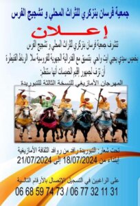 تنظم جمعية فرسان بنزكري للتراث المحلي و تشجيع الفرس بتنسيق مع الفيديرالية الجهوية للفروسية سلا الرباط القنيطرة :