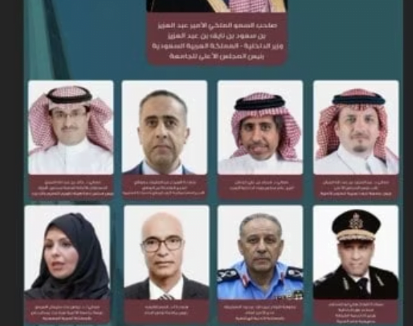 نشرت جامعة نايف العربية للعلوم الأمنية في بوابتها الرسمية وصفحاتها على مواقع تويتر وفايسبوك وأنستغرام لائحة أعضاء المجلس الأعلى للجامعة. وأهمية هذا المجلس تنبع من كونه أعلى سلطة تقريرية، فهو الذي يرسم السياسة العامة للجامعة ولمختلف الكليات والمعاهد العليا التابعة لها، ويتولى الإشراف علـى شؤونها العلمية والإدارية والمالية، علاوة على اتخاذ القرارات التي تكفل التحقيق الأمثل لأهدافها الدراسية والعلمية.