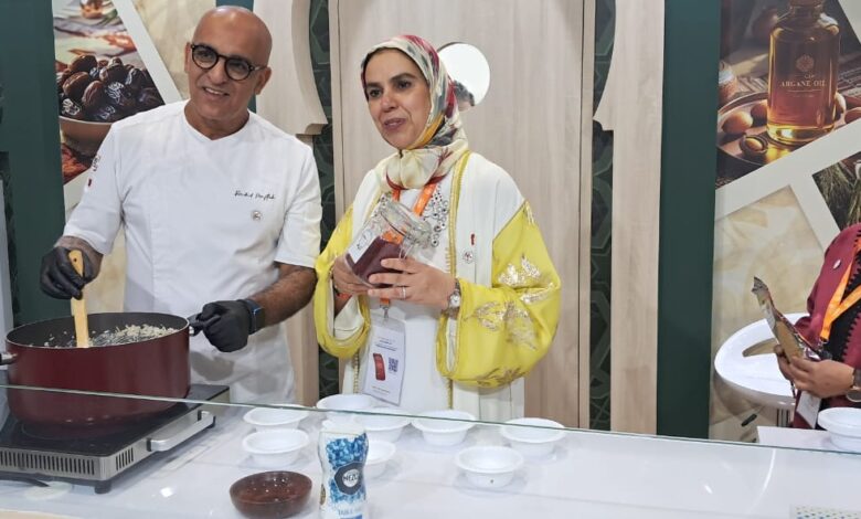 كما أن مشاركة السيدة فاطمة بمعرض أبوظبي، تميزت بمشاركتها مع الشاف المغربي الشهير رشيد مفتوح، ليقدما عرضا متميزا في فن الطبخ المغربي التقليدي، و تجدر الإشارة أن الشاف رشيد مفتوح يعد أستاذ بارعا في الطبخ العالمي والمغربي بشكل خاص، و قد حصل على العديد من الجوائز العالمية، و اكتسب خبرة كبيرة في فن الطهي الفرنسي، كما أنه يعد عضو لجنة تحكيم برنامج ماستر شاف المغرب لسنوات عديدة، و قد شكل حضوره في هذا المعرض الدولي بأبوظبي محطة فارقة في مسيرته، إذ أبدع بمعية السيدة فاطمة في إعداد طبق مغربي أمازيغي أصيل “بركوكش”، يجمع بين نكهة الزعفران البيولوجي و لمسة الإبداع المغربي الأصيل جذب انظار الزوار، و نال إشادة النقاد ليعكس هذا التعاون صورة مشرفة عن المغرب في انسجام ينبض بعبق و غنى الترات المغربي الضارب في القدم .