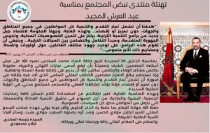 بمناسبة ذكرى عيد العرش المجيد- منتدى نبض المجتمع يتقدم بالتهاني للسدة العالية بالله