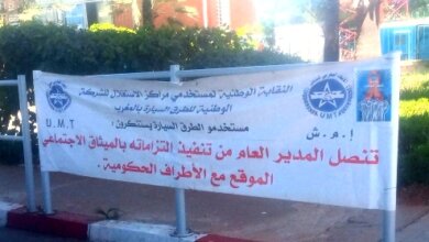 نقط الأداء بالطرق السيارة بالمغرب تحمل لافتة يستكر فيها أصحابها من تنصل المدير العام من تنفيذ التزاماته بالميثاق الاجتماعي الموقع…
