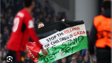 مشجع يقتحم مباراة مانشستر يونايتد وكونبهاجن حاملا علم فلسطين