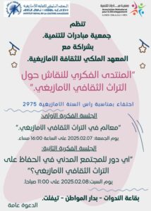 و يأتي هذا المنتدى ضمن جهود جمعية مبادرات للتنمية لتعزيز الوعي الثقافي الأمازيغي بمدينة تيفلت، حيث تسعى إلى خلق فضاءات للنقاش و التداول الفكري حول قضايا التراث و الهوية. كما يمثل هذا اللقاء نموذجًا للمساهمة المجتمعية في دعم السياسات الثقافية، و تعزيز البحث العلمي و التوثيق للحفاظ على التراث الأمازيغي للأجيال القادمة.