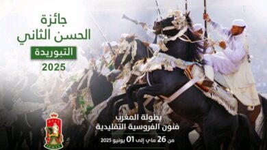 -  ثقافة  الجامعة الملكية المغربية للفروسية تنظم جائزة التبوريدة 2025 في حلة جديدةأعلنت الجامعة الملكية المغربية للفروسية أنها ستنظم في الفترة من 26 ماي الجاري إلى فاتح يونيو المقبل في دار السلام… أكمل القراءة »