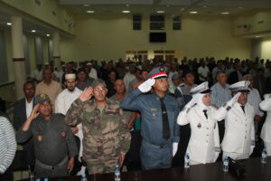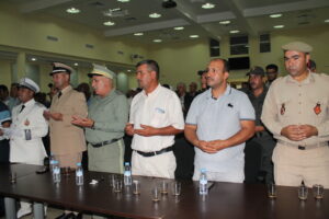 ثم وقف الجميع احتراما للنشيد الوطني، ليتم رفع أكف الضراعة إلى الله عز وجل بأن يحفظ جلالة الملك و يمده بموفور الصحة و العافية، و يقر عينه بولي عهده المحبوب صاحب السمو الملكي الأمير الجليل مولاي الحسن، و يشد أزره بشقيقه صاحب السمو الملكي الأمير مولاي رشيد و سائر أفراد الأسرة الملكية الشريفة…