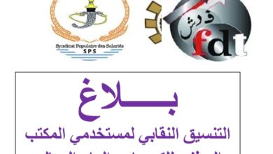 -  حوادث  بـــــلاغ التنسيق النقابي لمستخدمي المكتب الوطني للكهرباء والماء الصالح للشرب قطاع الماء يدعو كافة المستخدمين والمستخدمات للانخراط الواسع والمسؤول في البرنامج النضالي المسطرتغطية: محمد طويل استجابة لنداء التنسيق النقابي، وتنفيذا للبرنامج النضالي المقرر، خاض مستخدمو ومستخدمات المكتب الوطني للكهرباء والماء الصالح للشرب… أكمل القراءة »